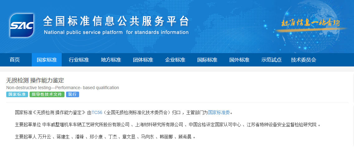 全国无损检测标准化技术委员会 国家标准化管理委员会于2024年10月15日发布GB/Z 44526-2024 《无损检测 操作能力鉴定》,发布日期:2024-09-29 实施日期:2024-09-29,本标准等同采用ISO国际标准:ISO/TS 11774:2011